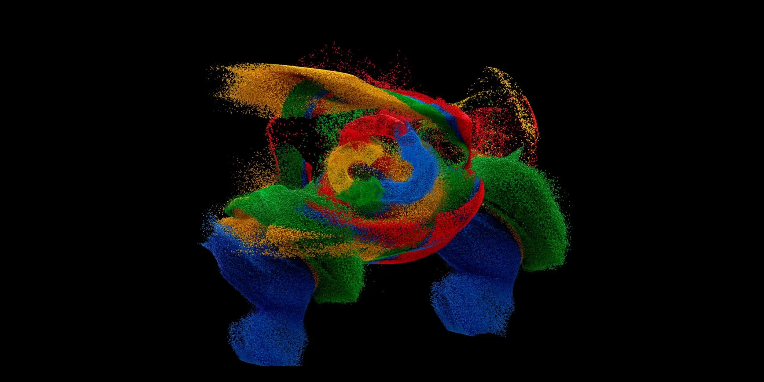 A través de una animación inspirada en arte generativo, un millón de partículas de datos se unen para formar el logotipo de Google Cloud, demostrando la capacidad de almacenamiento y procesamiento de la plataforma.
