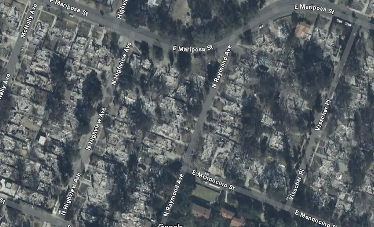 Las nuevas imágenes de Google Maps evidencian esta tragedia: barrios enteros fueron reducidos a cenizas, y lo que antes eran calles arboladas ahora se ha convertido en un escenario de escombros y destrucción.